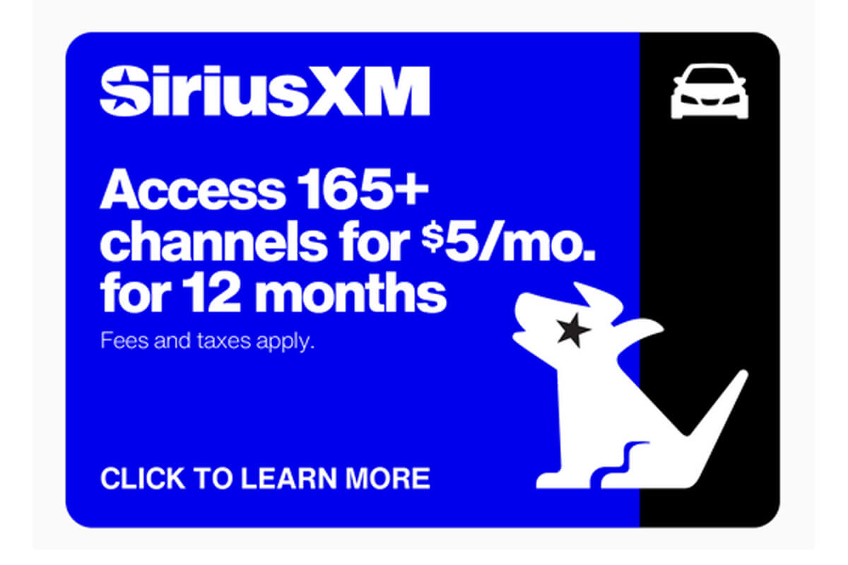 - 165+ channels in your vehicle via satellite